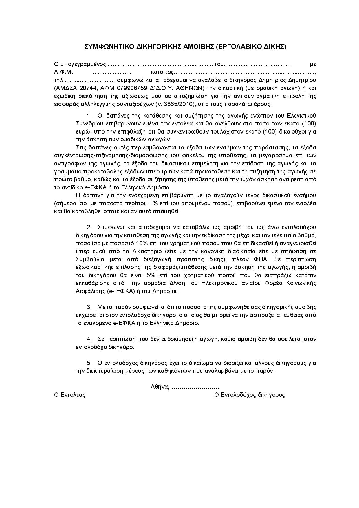 ΣΥΜΦΩΝΗΤΙΚΟ ΔΙΚΗΓΟΡΙΚΗΣ ΑΜΟΙΒΗΣ
