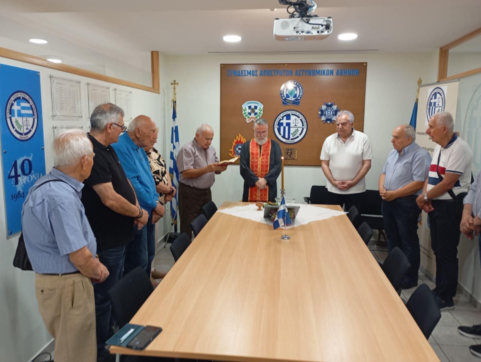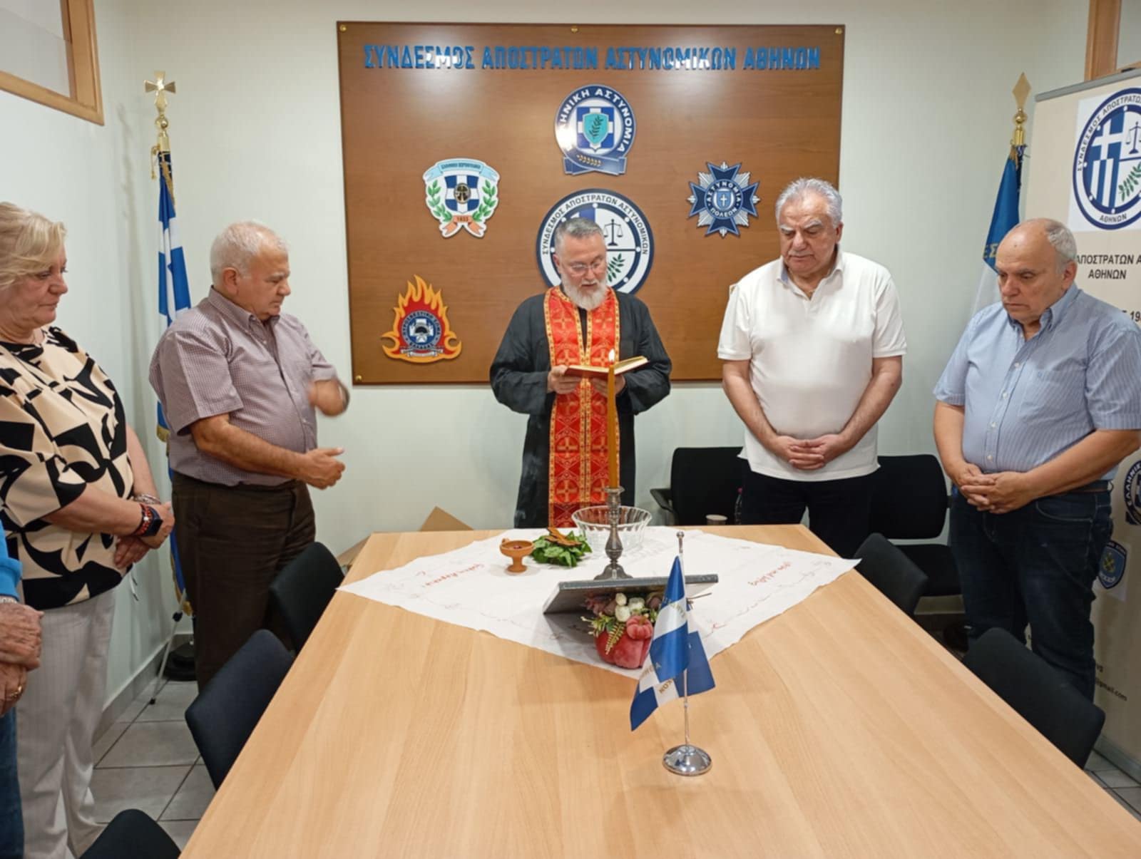 Στα γραφεία του Συνδέσμου μας, την Πέμπτη 5-6-2025 έγινε ο αγιασμός λόγω αναλήψεως καθηκόντων του νέου Διοικητικού Συμβουλίου και της Εξελεγκτικής Επιτροπής του Συνδέσμου Αποστράτων Αστυνομικών Αθηνών με τις ευλογίες του Πανοσιολογιότατου Αρχιμανδρίτη και εφημέριου του παρεκκλησίου Αγίου Γεωργίου Μακρυγιάννη πατέρα Σιλουανού και της παρουσίας του Προέδρου Π.Ο.Α.Σ.Α. κ. ΜΠΕΤΤΑ Δημητρίου και εκπροσώπων του Δ.Σ. Π.Ο.Α.Σ.Α. κ. ΤΣΙΒΙΚΗ Ηλία, του Προέδρου της Π.Ε.Α.Α.Α.Π. κ. ΠΑΠΑΕΥΘΥΜΙΟΥ Ηλία, του Γεν. Γραμματέα Π.Ε.Α.Α.Α.Π. και μέλους Δ.Σ. της Π.Ο.Α.Σ.Α. κ. ΚΟΡΦΟΞΥΛΙΩΤΗ Γεωργίου καθώς μελών του Συνδέσμου μας.