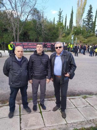 Τη Δευτέρα 11/12/2023 ο Σύνδεσμος Αποστράτων Αστυνομικών Αθηνών, με εκπροσώπους του Δ.Σ., συμμετείχε και συμπαραστάθηκε στη διαμαρτυρία των ενεργεία συναδέλφων μετά από το κάλεσμα της Ένωσης Αστυνομικών Υπαλλήλων Αθηνών. Η διαμαρτυρία πραγματοποιήθηκε στις εγκαταστάσεις της ΥΑΤ – Γουδί – Αθήνα μετά την απόπειρα ανθρωποκτονίας με τον βαρύτατο τραυματισμό του 31χρονου συναδέλφου μας κατά τα επεισόδια στου Ρέντη από οργανωμένους οπαδούς και την αυξανόμενη και συνεχώς εξελισσόμενη βία μέσα και έξω από τους αθλητικούς χώρους. Παραβρέθηκαν ο κ. Πρόεδρος Αντ/γος ε.α. Χριστολουκάς Νικόλαος , ο κ. Γεν. Γραμματέας  Υπ/γος ε.α. Σερέτης Δημήτριος και ο κ. Ταμίας Αστυν. Α’  ε.α.  Γιαννούλης Ιωάννης. Συμμετείχε ο Πρόεδρος της ΠΟΑΣΑ κ. Χριστακόπουλος Ευάγγελος, ο οποίος χαιρέτησε την εκδήλωση με το σύνθημα «οι απόστρατοι συνάδελφοι είμαστε η ασπίδα σας στην κοινωνία». Ακολούθησε συμμετοχή των μελών του Δ.Σ. στην πορεία προς στο υπουργείο Προστασίας του Πολίτη.