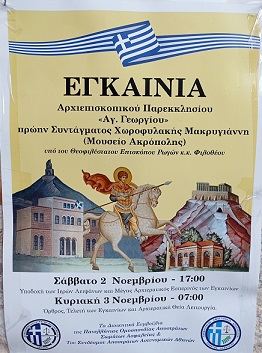 Το Σάββατο 2 και την Κυριακή 3 Νοεμβρίου 2024 τελέσθηκαν με τη δέουσα μεγαλοπρέπεια και επισημότητα τα εγκαίνια του Ιερού Αρχιεπισκοπικού Προσκυνηματικού Παρεκκλησίου του Αγίου Γεωργίου πρώην Συντάγματος Χωροφυλακής Μακρυγιάννη που βρίσκεται στο Μουσείο της Ακρόπολης.