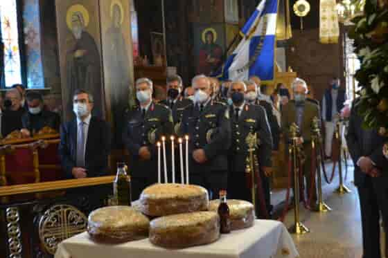 Μετά το πέρας της θείας λειτουργίας τελέστηκε επιμνημόσυνο δέηση στο μνημείο των πεσόντων της Ελληνικής Χωροφυλακής που έπεσαν για την πατρίδα κατά την εκτέλεση του καθήκοντος. Στεφάνια κατέθεσαν ο Υφυπουργός κ. ΟΙΚΟΝΟΜΟΥ Ελευθέριος και επίτιμος Αρχηγός της ΕΛ.ΑΣ. , ο Γ.Γ. της Π.Ο.Α.Σ.Α. Αντιστράτηγος ε.α. ΚΟΥΤΣΟΠΟΔΙΩΤΗΣ Οδυσσεύς , ο Βουλευτής της Ν.Δ. και επίτιμος Αρχηγός της ΕΛ.ΑΣ. στρατηγός ΔΗΜΟΣΧΑΚΗΣ Αναστάσιος, ο Πρόεδρος του Συνδέσμου Αποστράτων Αστυνομικών Αθηνών Αντιστράτηγος ε.α. ΧΡΙΣΤΟΛΟΥΚΑΣ Νικόλαος, ο πρόεδρος του Συνδέσμου Αποστράτων Σωμάτων Ασφαλείας Νοτιοανατολικής Αττικής Αντιστράτηγος ε.α. ΜΠΟΥΛΟΥΚΟΣ Δημήτριος , ο Πρόεδρος του Συνδέσμου Αποστράτων Σωμάτων Ασφαλείας Δυτικής Αττικής Υπαστυνόμος Α΄ ε.α. ΜΠΟΤΑΙΤΗΣ Αντώνιος , ο Πρόεδρος της Πανελληνίου Ενώσεως Αποστράτων Αξιωματικών Αστυνομίας Πόλεων Αντιστράτηγος ε.α. ΠΑΠΑΕΥΘΥΜΙΟΥ Ηλίας , ο Πρόεδρος του Εθνικού Τμήματος της ΙΡΑ Αντιστράτηγος ε.α ΒΑΛΑΤΣΟΣ Βλάσιος. Ακολούθησε η τήρηση ενός λεπτού σιγής στη μνήμη των πεσόντων και η ανάκρουση του Εθνικού μας ύμνου από τμήμα της Μουσικής της Ελληνικής Αστυνομίας . Ακολούθησε μικρή δεξίωση στο αρχονταρίκι της εκκλησίας από τον Σύνδεσμο Αθηνών.