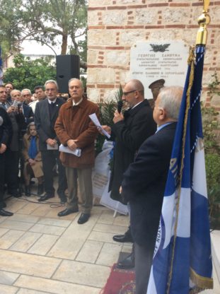 Σε συγκινητική του παρέμβαση ο υιός του αείμνηστου Διοικητού Συντάγματος Χωροφυλακής Μακρυγιάννη και μετέπειτα Αρχηγού Χωρ/κης κ. Ανδρέας ΣΑΜΟΥΗΛ απένειμε το φόρο τιμής στον πατέρα του και ευχαρίστησε τους συνδικαλιστικούς φορείς για την πρωτοβουλία κατασκευής του γλυπτού.