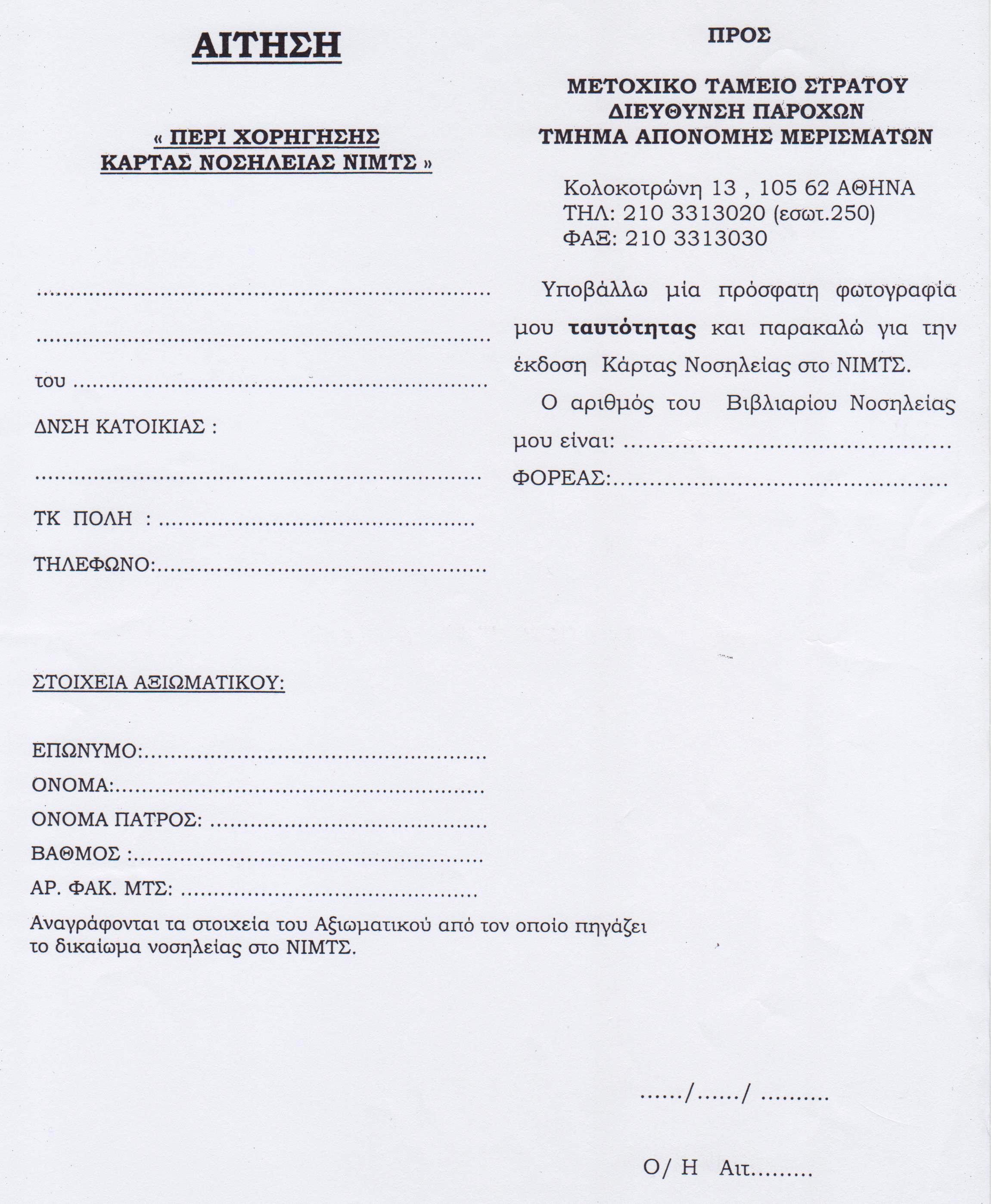 001ΑΙΤΗΣΗ ΚΑΡΤΑΣ ΝΟΣΗΛΕΙΑΣ ΝΙΜΤΣ