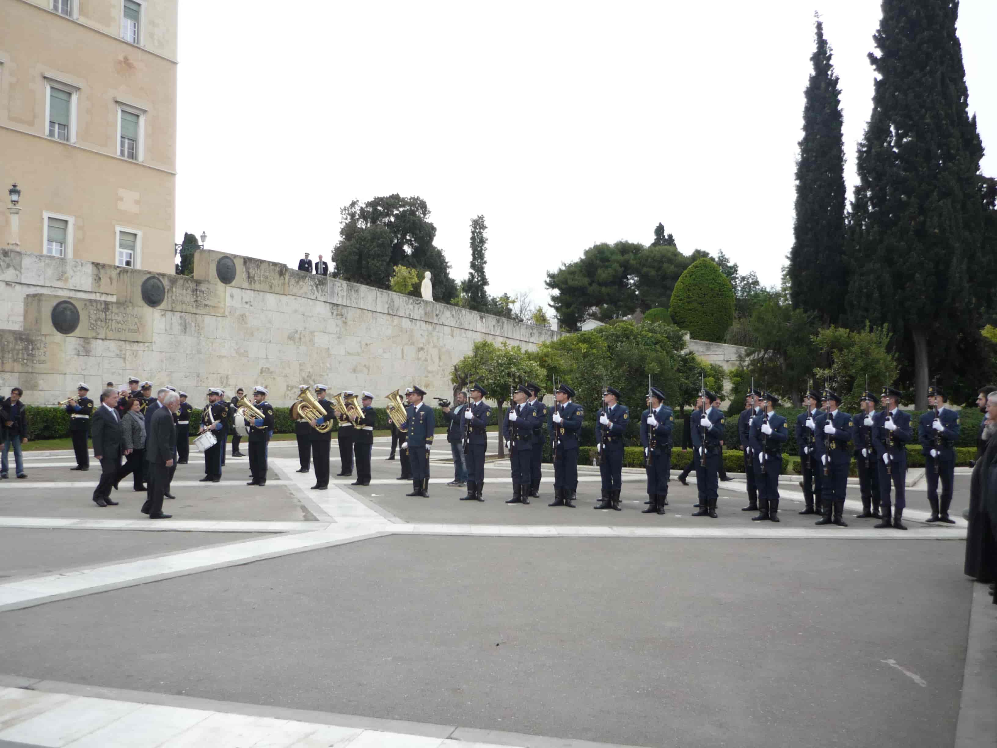 Με επισημότητα πραγματοποιήθηκε σήμερα η κατάθεση στεφάνων στο Μνημείο του άγνωστου Στρατιώτη απο τον Αναπληρωτή υπουργό Παιδείας κ. ΠΕΛΕΓΚΡΙΝΗ, τον εκπρόσωπο της Βουλής των Ελλήνων, τον εκπρόσωπο Υποστράτηγο του ΓΕΕΘΑ, την Αντιπεριφερειάρχη της Περιφέρειας Αττικής, τον Αντιδήμαρχο του Δήμου Αθηναίων, τους Προέρδρους των Ενώσεων Αποστράτων Αξιωματικών των τριών Ενώσεων ΕΑΑΣ, ΕΑΑΝ, ΕΑΑΑ, και άλλων Ομοσπονδιών και εφεδροπολεμικών οργανώσεων. Την Π.Ο.Α.Σ.Α. εκπροσώπησε ο Αντιπρόεδρος αυτής επίτιμος Υπαρχηγός της Ελληνικής Αστυνομίας Αντιστράτηγος ε.α. ΑΝΑΓΝΩΣΤΟΥ Γρηγόριος, τον δε Σύνδεσμο Αποστράτων Αστυνομικών Αθηνών ο Γ.Γ. Αντιστράτηγος ε.α. ΚΟΥΤΣΟΠΟΔΙΩΤΗΣ Οδυσσεύς. Στη συνέχεια πραγματοποιήθηκε η μαθητική παρέλαση.