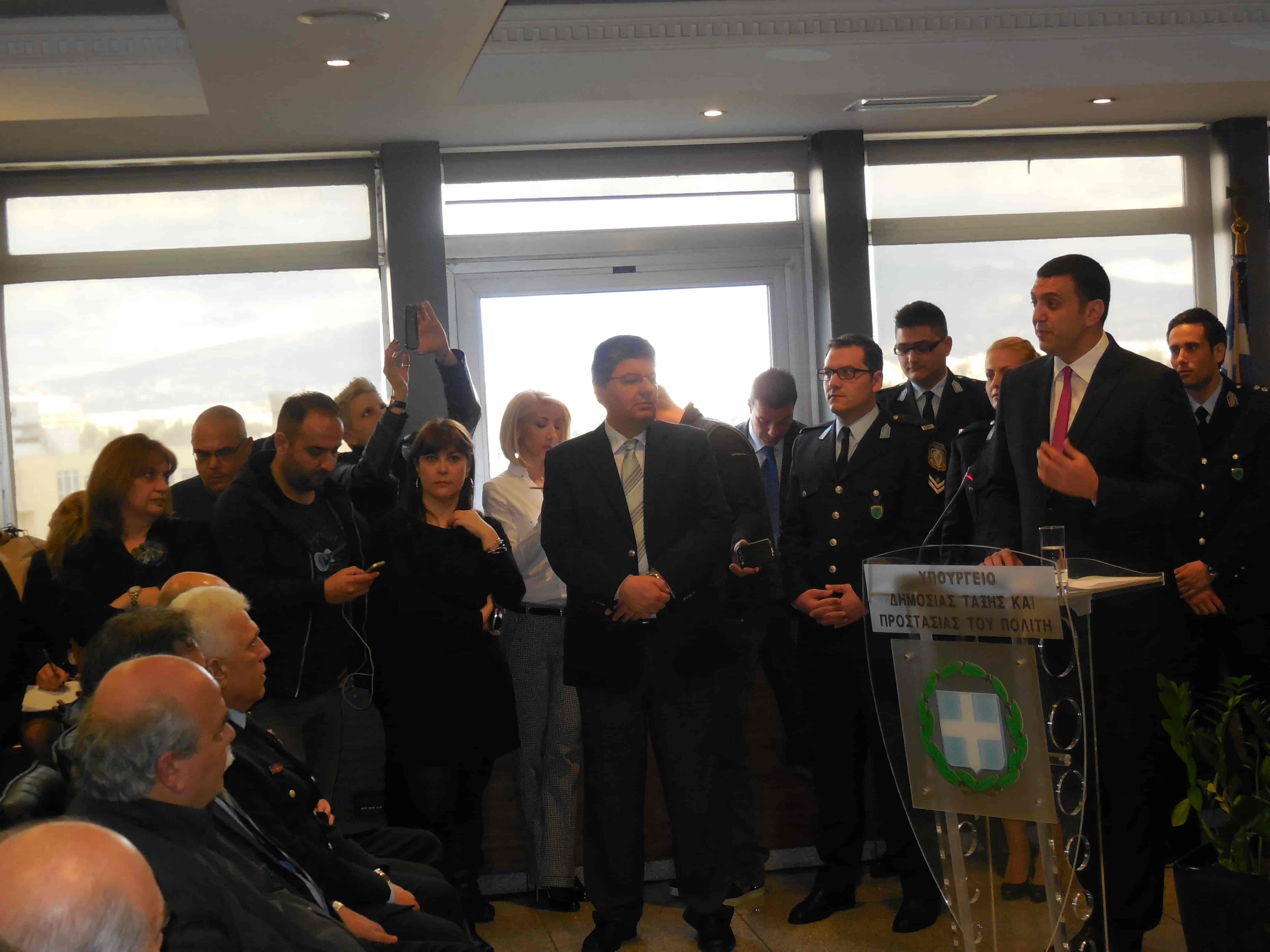 Ο απερχόμενος υπουργός αναφέρθηκε με λίγα λόγια στα πεπραγμένα του Υπουργείου στους 8 μήνες που διετέλεσε υπουργός και ειδικότερα στην αποτελεσματικότητα σε όλο το εύρος  του αστυνομικού έργου των Υπηρεσιών του Αρχηγείου της Ελληνικής Αστυνομίας με έμφαση στην πάταξη της εγκληματικότητας και στις επιτυχίες στην αντιτρομοκρατία με την σύλληψη καταζητούμενων τρομοκρατών και το ανθρώπινο πρόσωπο που επέδειξαν οι αστυνομικοί  προς την κοινωνία. Επίσης αναφέρθηκε και στην δραστηριότητα του Πυροσβεστικού Σώματος στην αντιμετώπιση των Πυρκαγιών και την αυτοθυσία τους που επέδειξαν στον αγώνα κατά του πύρινου κινδύνου .