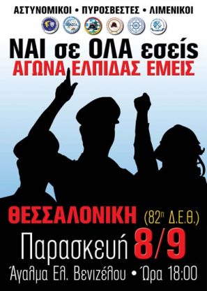 Η Π.Ο.Α.Σ.Α.  συμμετέχει μαζί με τη ΠΟΑΣΥ και τη ΠΟΑΞΙΑ στις διαμαρτυρίες  κινητοποιήσεις των εν ενεργεία και αποστρατεία στελεχών των Σωμάτων Ασφαλείας κατά τη διάρκεια της 82ης Διεθνούς Έκθεσης Θεσσαλονίκης στις 8-Σεπτεμβρίου-2017 ημέρα Παρασκευή και ώρα 18:00 στο άγαλμα του Ελευθερίου Βενιζέλου Πλ. Δικαστηρίων.