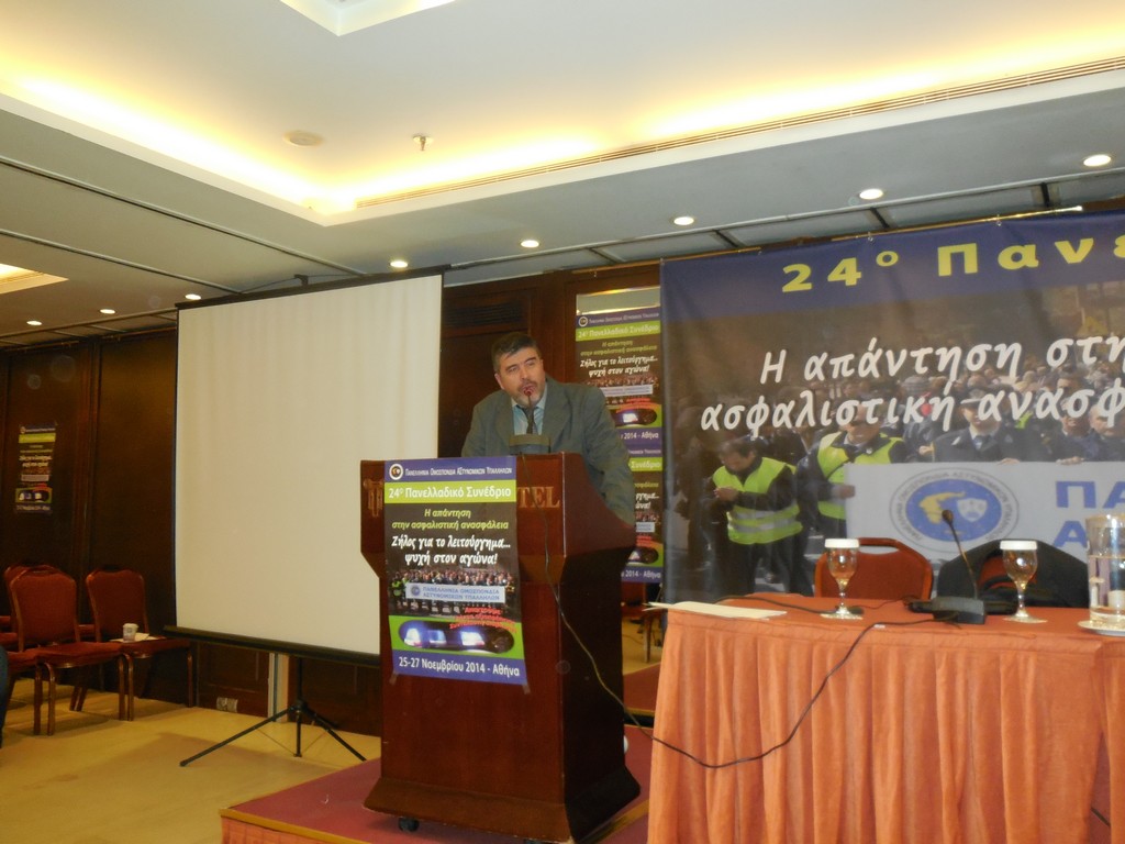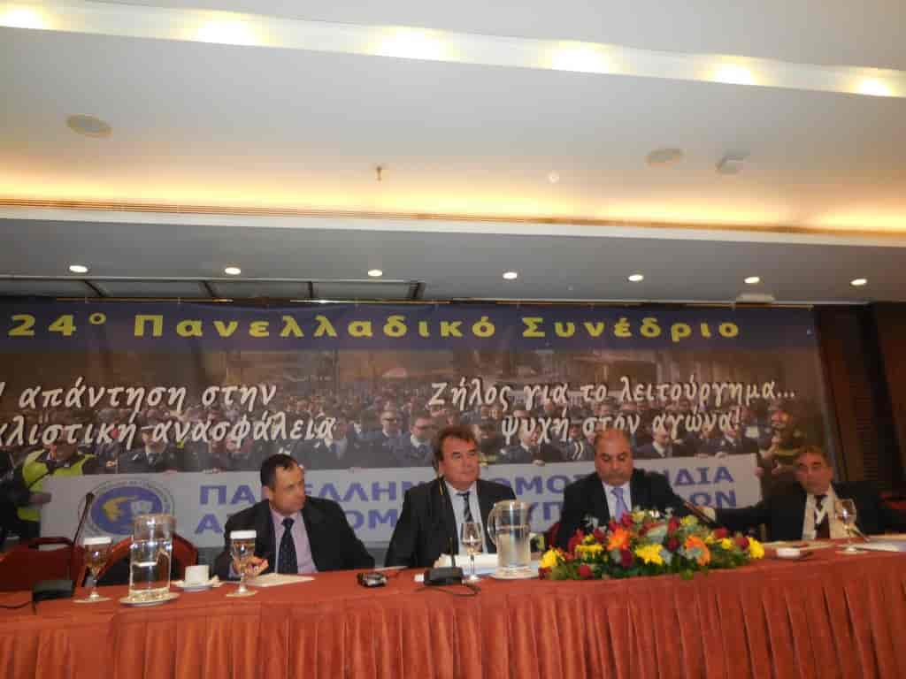 Πραγματοποιήθηκε το 24 ΣΥΝΕΔΡΙΟ της Π.Ο.Α.Σ.Υ. Στο συνέδριο παρέστησαν από την Π.Ο.Α.Α.Σ.Α. ο Πρόεδρος μας Υποστράτηγος ε.α. ΧΡΙΣΤΑΚΟΠΟΥΛΟΣ Ευάγγελος , ο Γ.Γ. Αντιστράτηγος ε.α. ΚΟΥΤΣΟΠΟΔΙΩΤΗΣ Οδυσσεύς και ο Ειδικός Γραμματέας και νομικός μας σύμβουλος Αστυνομικός διευθυντής ε.α. ΚΑΛΛΟΓΙΑΝΝΑΚΗΣ Νικήτας. Από τον Σύνδεσμο Αποστράτων Αστυνομικών Αθηνών ο αντιπρόεδρος Υποστράτηγος ε.α. ΣΚΛΑΒΟΣ Ιωάννης. Ο πρόεδρος της Π.Ο.Α.Α.Σ.Α. έλαβε τον λόγο και μεταξύ των άλλων << τόνισε τον στρατηγικό μας στόχο που είναι η δημιουργία ενός ασφαλιστικού Πυλώνα που θα αποτελείται από τους Ασφαλιστικούς Φορείς των Ενόπλων Δυνάμεων και των Σωμάτων Ασφαλείας >>. Στο Συνέδριο παρέστησαν οι Γ.Γ. των υπουργείων Προστασίας του Πολίτη Κ. ΑΝΔΡΕΟΥΛΑΚΟΣ και του Υπουργείου Δικαιοσύνης κ. ΤΣΙΓΚΡΗΣ, ο Αρχηγός ΕΛ.ΑΣ Αντιστράτηγος κ. ΤΣΑΚΝΑΚΗΣ Δημήτριος, ο κ. Υπαρχηγός , Επιτελείς του Αρχηγείου και εκπρόσωποι των κομμάτων.